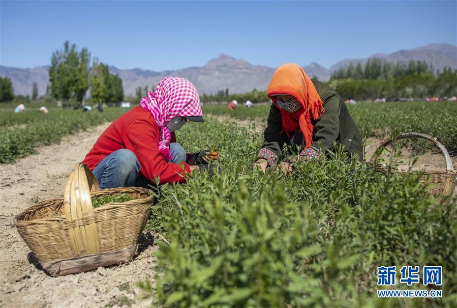 5月11日,采茶工在寧夏百瑞源賀蘭山基地采摘枸杞芽茶。當日,寧夏百瑞源賀蘭山基地枸杞芽茶全面進入采摘季。據(jù)了解,該基地茶園面積300余畝,助力附近200多名農(nóng)民就業(yè)增收。新華社記者楊植森攝