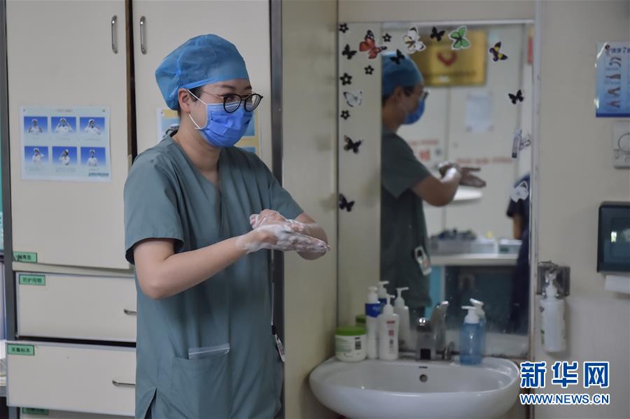 5月11日,在北京地壇醫(yī)院感染二科護(hù)士站,一名護(hù)士在洗手。北京地壇醫(yī)院是北京市收治新冠肺炎患者的定點醫(yī)院之一,醫(yī)院的醫(yī)護(hù)人員一直奮戰(zhàn)在抗擊疫情的一線。在國際護(hù)士節(jié)前夕,記者前往北京地壇醫(yī)院,記錄下抗疫一線護(hù)士的日常工作狀態(tài)。新華社記者彭子洋攝