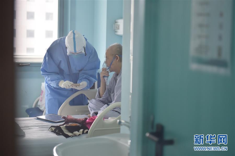 5月11日,在北京地壇醫(yī)院感染二科病房?jī)?nèi),護(hù)士高齊教一名老年病人使用手機(jī)。北京地壇醫(yī)院是北京市收治新冠肺炎患者的定點(diǎn)醫(yī)院之一,醫(yī)院的醫(yī)護(hù)人員一直奮戰(zhàn)在抗擊疫情的一線。在國(guó)際護(hù)士節(jié)前夕,記者前往北京地壇醫(yī)院,記錄下抗疫一線護(hù)士的日常工作狀態(tài)。新華社記者彭子洋攝