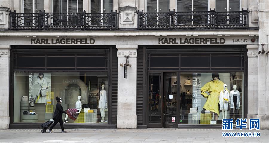 5月12日,一名女子從英國倫敦攝政街關(guān)閉的店鋪前經(jīng)過。