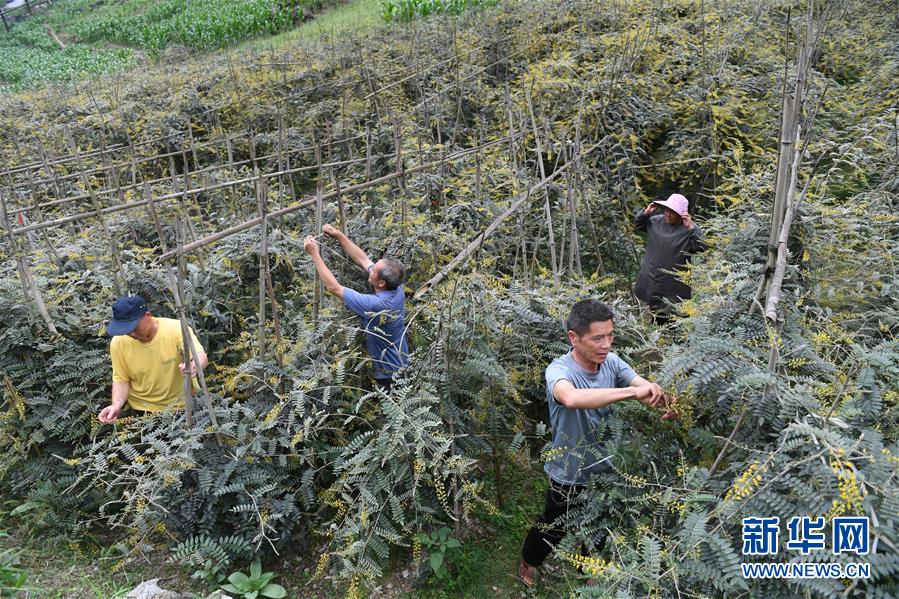 5月13日,在廣西環(huán)江毛南族自治縣下南鄉(xiāng)下塘村,村民在管護中草藥。新華社記者陸波岸攝