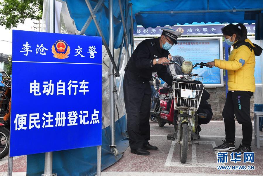 5月14日,市民在青島市李滄區(qū)便民注冊登記點辦理電動自行車掛牌手續(xù)。近日,青島公安交管部門加大了電動自行車上牌服務(wù)工作,通過增設(shè)掛牌服務(wù)網(wǎng)點、無接觸材料申報、上門集中受理等形式方便群眾上牌。據(jù)了解,9月1日后,山東省內(nèi)未懸掛號牌或臨時號牌的電動自行車將不得上路行駛。交管部門表示,全面完成登記上牌后,交管部門還會加大路面管控,加強對電動自行車規(guī)范管理。新華社記者李紫恒攝