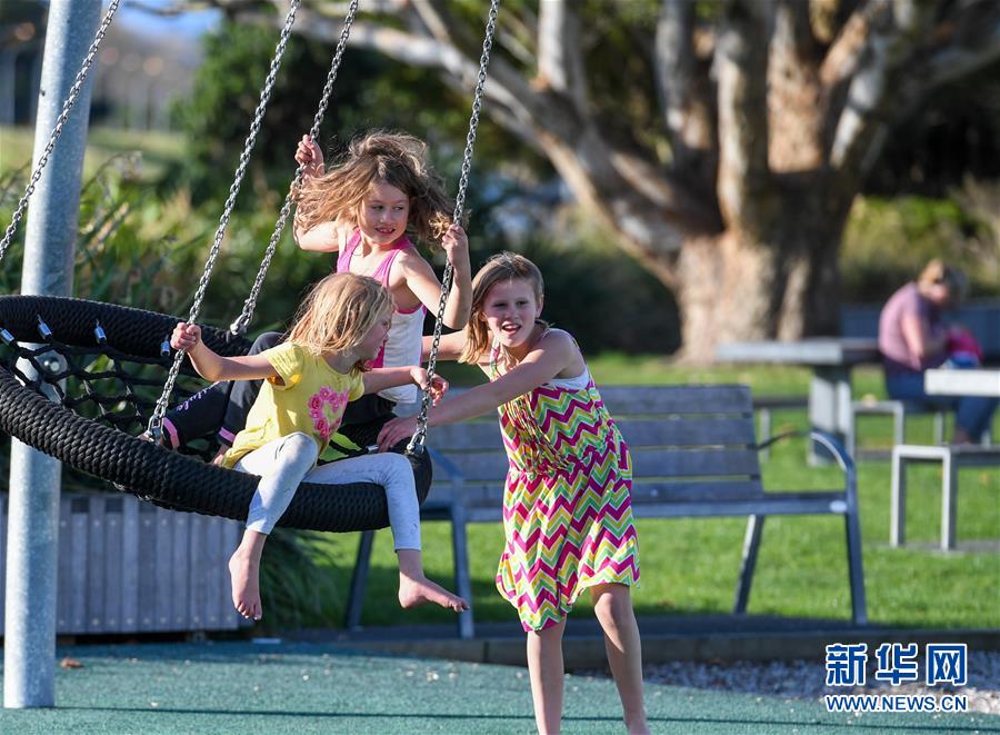 5月14日,孩子們?cè)谑锥蓟蒽`頓郊外公園的游樂場(chǎng)玩耍。當(dāng)天是新西蘭從新冠疫情防控響應(yīng)三級(jí)下調(diào)到二級(jí)的第一天,經(jīng)濟(jì)活動(dòng)全面重啟,公園等公共設(shè)施首次重新開放,中小學(xué)生將于5月18日全面返校復(fù)課。新華社記者郭磊攝