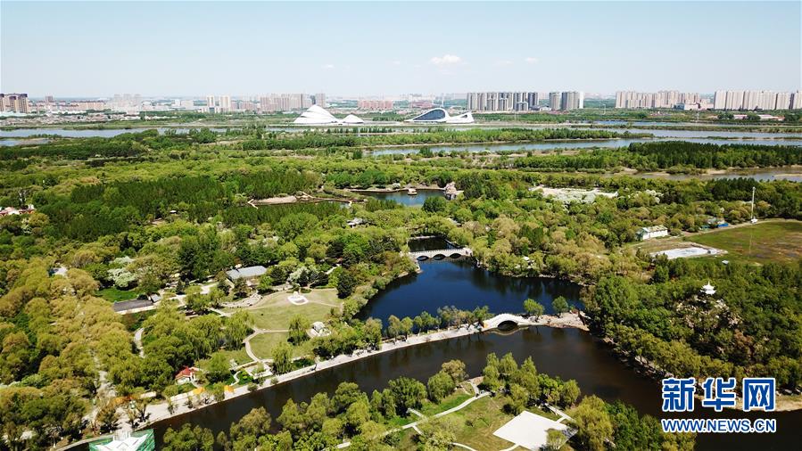 這是5月14日拍攝的哈爾濱大劇院附近的一處濕地(無人機照片)。時下,“國際濕地城市”黑龍江省哈爾濱市各處濕地綠意漸濃,展現(xiàn)出“萬頃松江濕地,百里生態(tài)長廊”的壯闊畫卷。新華社記者王建威攝