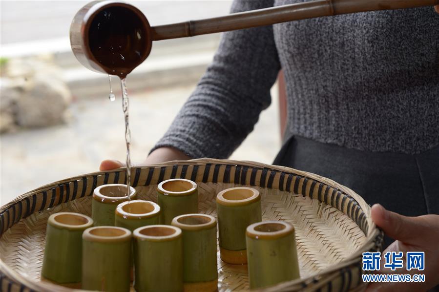 5月14日,在貴州省畢節(jié)市百里杜鵑管理區(qū)黃泥鄉(xiāng)龍?zhí)链逡患揖谱鞣?,村民在品嘗剛出的蒸餾酒。貴州省畢節(jié)市百里杜鵑管理區(qū)黃泥鄉(xiāng)龍?zhí)链宓凝執(zhí)凉啪疲颡毺氐墓欧ㄡ劸萍夹g(shù),口感獨特而遠(yuǎn)近聞名。全村有釀酒戶142戶,年產(chǎn)量達(dá)45萬多公斤,龍?zhí)凉啪七h(yuǎn)銷重慶、廣東、浙江等地,龍?zhí)凉啪埔殉蔀辇執(zhí)寥嗽鍪盏闹匾獊碓?。新華社記者楊楹攝