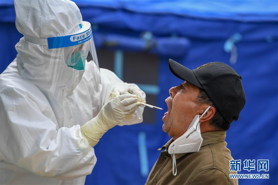 5月15日,在舒蘭市建馨園小區(qū),工作人員為居民采集咽拭子。當日,從吉林市7家市直醫(yī)院抽調(diào)的300名護士經(jīng)培訓后,全部投入到舒蘭市(隸屬于吉林市)核酸采樣工作中。為提供追溯傳染源所必需的核酸檢測相關(guān)數(shù)據(jù),舒蘭市根據(jù)確診病例的活動軌跡,將流調(diào)和核酸檢測范圍擴大至本地確診病例和無癥狀感染者的次密接人員及一般接觸者。新華社記者張楠攝