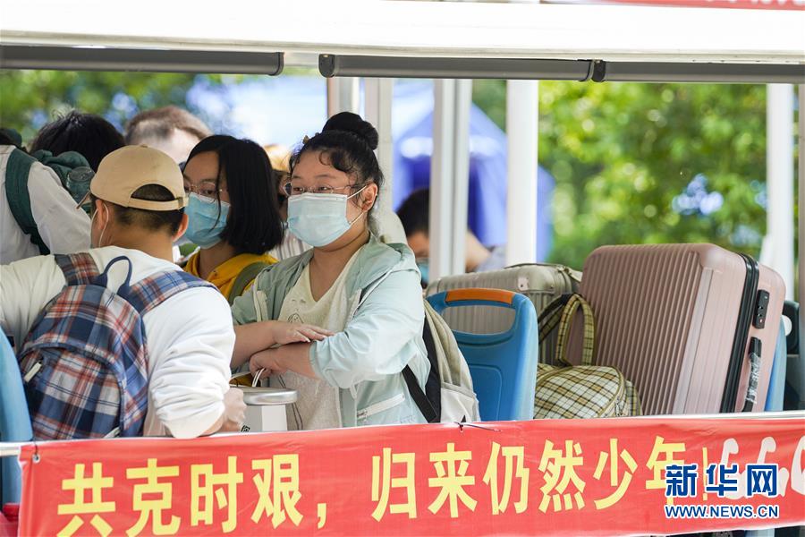 5月15日,在西南大學的返校學生專用通道前,學生按照工作人員和志愿者的引導有序進入校區(qū)。當日,重慶西南大學迎來疫情以來首批返校大學生。據(jù)介紹,按照疫情防控的需要,重慶市高校2020年春季學期從5月11日起按照“一校一策”原則,實行錯峰錯時分批次有序開學復課。新華社記者劉潺攝