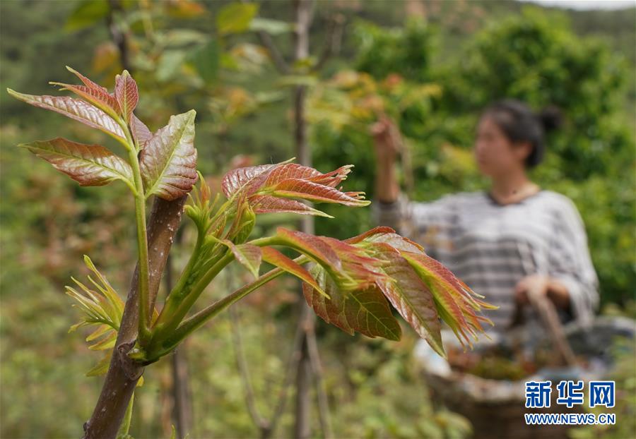 5月17日,秦皇島市撫寧區(qū)王家灣村的一位村民在自家香椿園采摘香椿芽。近年來,河北省秦皇島市撫寧區(qū)王家灣村村委會帶領村民在坡嶺荒地種植紅香椿樹1000多畝,綠化了荒坡荒地,增加了農民收入。新華社記者楊世堯攝