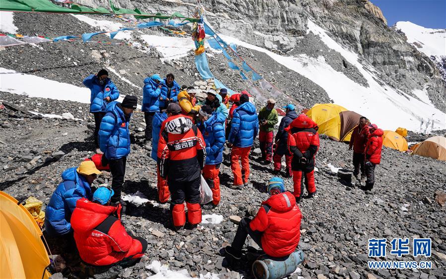 5月18日,沖頂隊(duì)員名單公布后,隊(duì)員們在進(jìn)行相關(guān)準(zhǔn)備工作。新華社特約記者扎西次仁攝