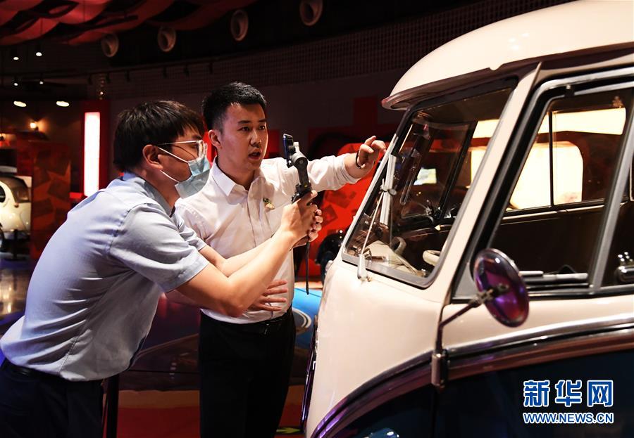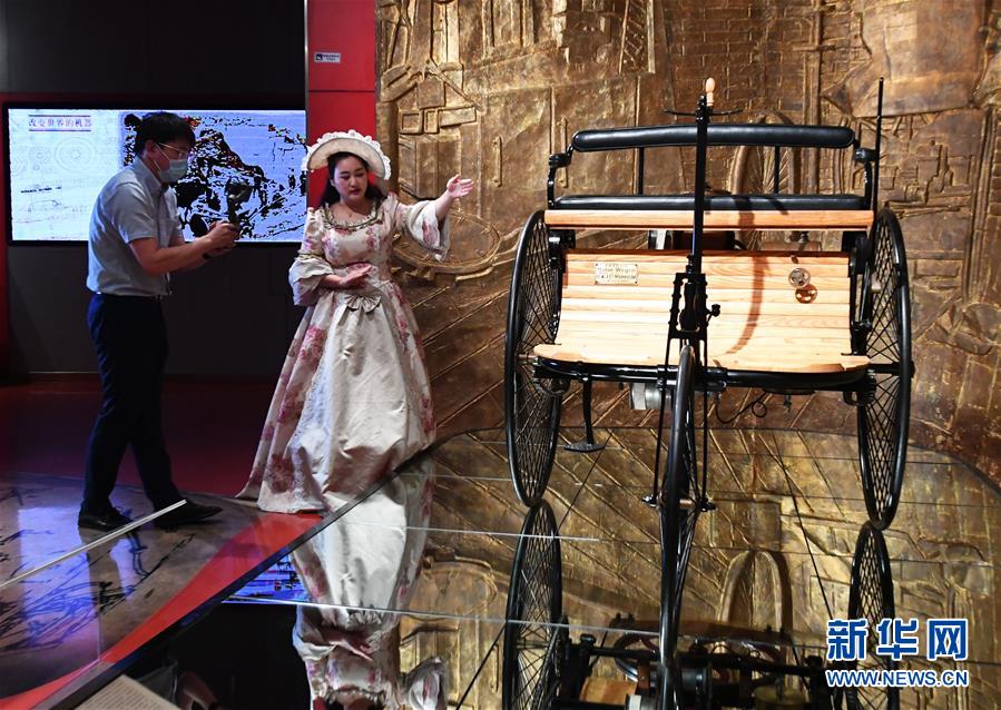 5月18日,在北京汽車博物館,工作人員(左)用講故事的方式通過網(wǎng)絡(luò)直播平臺(tái)介紹展品。當(dāng)日是國(guó)際博物館日,北京汽車博物館舉辦“帶你穿梭汽車時(shí)光”網(wǎng)絡(luò)直播活動(dòng),通過網(wǎng)絡(luò)直播平臺(tái)對(duì)博物館中的藏品車進(jìn)行展示和講解,讓網(wǎng)友足不出戶“云”游北京汽車博物館,了解汽車百年發(fā)展史,感受汽車文化魅力。新華社記者任超攝