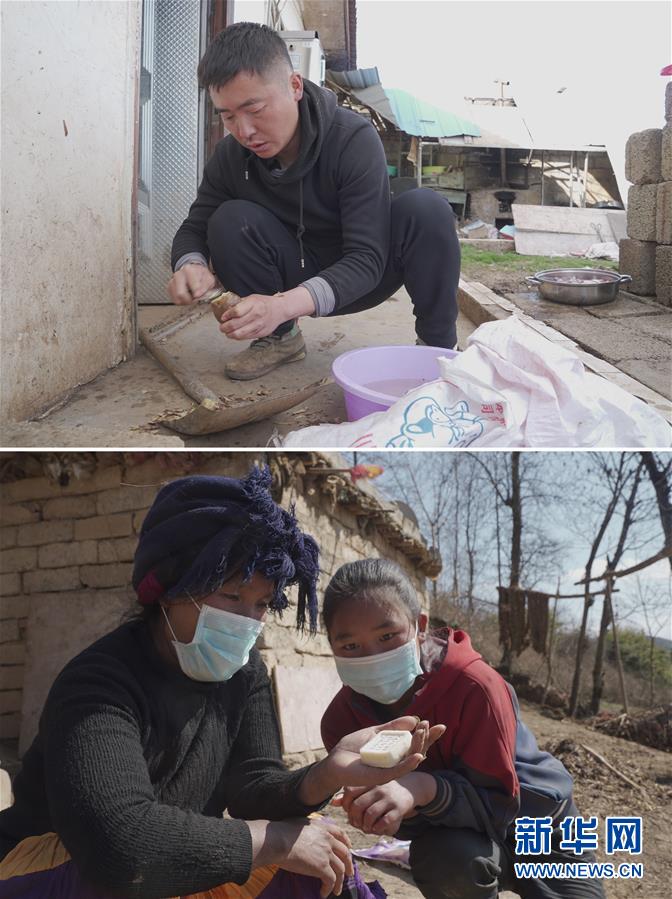 拼版照片上圖:在四川省涼山彝族自治州美姑縣瓦古鄉(xiāng),彭楊在削土豆皮,準備制作土豆手工皂(3月10日,新華社記者吳光于攝);下圖:在瓦古鄉(xiāng),15歲的沙馬也曲(右)和她的媽媽拿到了彭楊制作的土豆手工皂(3月10日,新華社記者薛晨攝)。四川省涼山彝族自治州美姑縣瓦古鄉(xiāng)扶貧干部彭楊所在的古覺村距鄉(xiāng)政府20公里,是美姑縣80個尚未脫貧村之一。他深知養(yǎng)成好的生活習(xí)慣,對當?shù)孛撠氈陵P(guān)重要,所以他不僅督促老百姓疊被子、整理房間,幫當?shù)氐暮⒆觽兿搭^、洗澡,還在疫情期間自制土豆手工皂分發(fā)給村民。彭楊說,疫情后準備發(fā)動留守婦女生產(chǎn)手工皂,計劃在1年內(nèi)建成一個吸納瓦古鄉(xiāng)4個村村民的手工皂合作社。黨的十八大以來,我們堅持以人民為中心的發(fā)展思想,明確了到2020年我國現(xiàn)行標準下農(nóng)村貧困人口實現(xiàn)脫貧、貧困縣全部摘帽、解決區(qū)域性整體貧困的目標任務(wù)。目前看,脫貧進度符合預(yù)期,成就舉世矚目。這些成績的取得,凝聚了全黨全國各族人民智慧和心血,是廣大干部群眾扎扎實實干出來的。脫貧摘帽不是終點,而是新生活、新奮斗的起點。新華社發(fā)