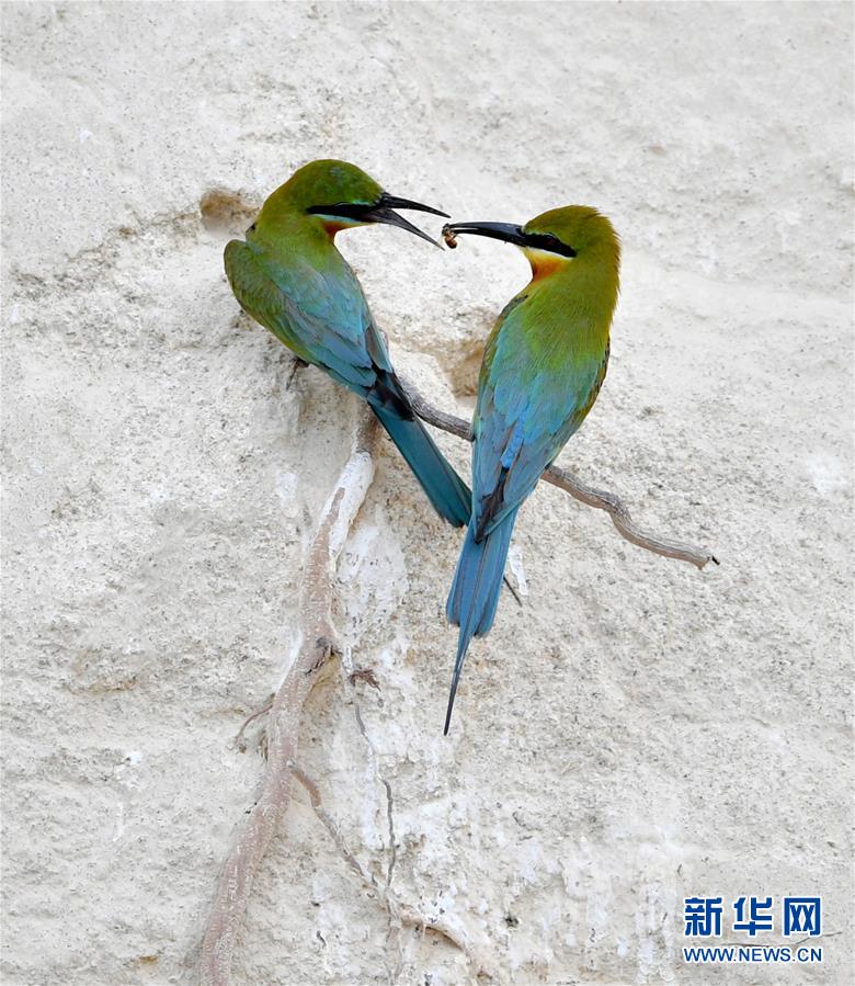 這是5月19日在廈門五緣灣栗喉蜂虎自然保護(hù)區(qū)拍攝的兩只栗喉蜂虎。近日,大批栗喉蜂虎來到廈門五緣灣栗喉蜂虎自然保護(hù)區(qū)棲息、繁殖。新華社記者魏培全攝