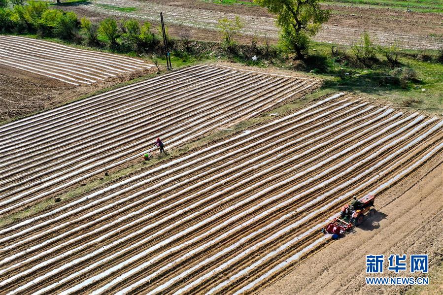 宋家溝村村民在種谷子(5月19日攝,無人機照片)。新華社記者曹陽攝