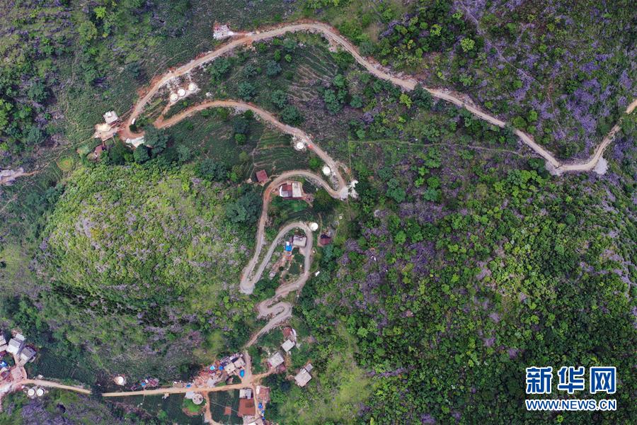 這是通向大化瑤族自治縣七百弄鄉(xiāng)弄平村的山路(5月15日攝,無(wú)人機(jī)照片)。新華社記者曹祎銘攝