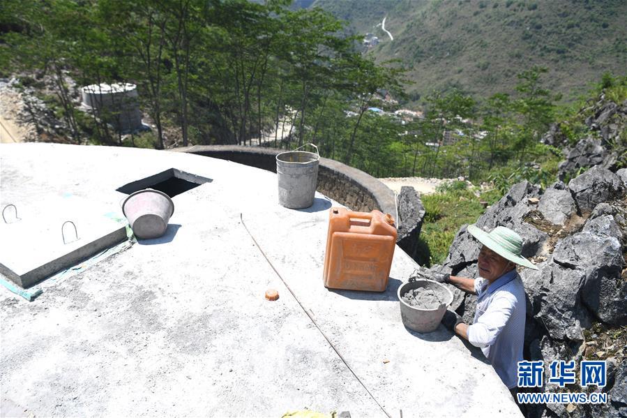 大化瑤族自治縣雅龍鄉(xiāng)勝利村群眾在建設(shè)水柜(2019年6月6日攝)。新華社記者張愛(ài)林?jǐn)z