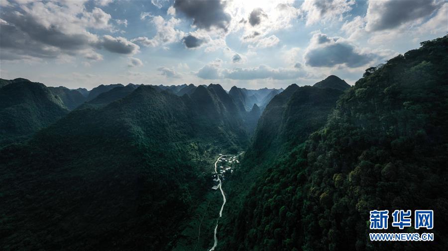 這是大化瑤族自治縣七百弄鄉(xiāng)弄平村的風(fēng)光(5月14日攝,無(wú)人機(jī)照片)。新華社記者張愛(ài)林?jǐn)z