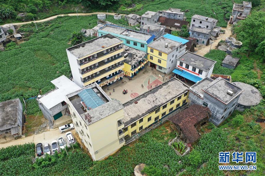 這是面貌煥然一新的廣西大化瑤族自治縣板升鄉(xiāng)弄勇小學(xué)(2019年5月10日攝,無(wú)人機(jī)照片)。新華社記者黃孝邦攝