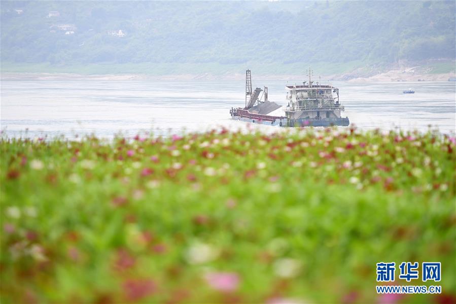5月20日,在重慶市巴南區(qū)木洞鎮(zhèn)開滿格桑花的長(zhǎng)江岸邊,遠(yuǎn)處航道上一艘輪船緩緩駛過。近日,重慶市巴南區(qū)木洞鎮(zhèn)長(zhǎng)江岸邊的格?;ǜ?jìng)相開放,吸引游客前來賞花觀景。新華社記者唐奕攝