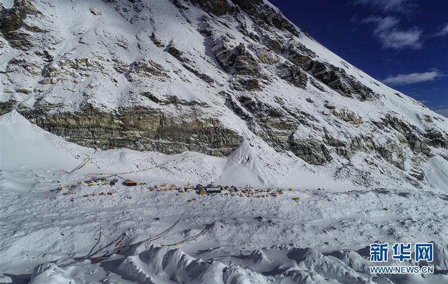 位于珠峰東絨布冰川旁海拔6500米的珠峰前進(jìn)營地(5月22日攝,無人機照片)。新華社記者晉美多吉攝