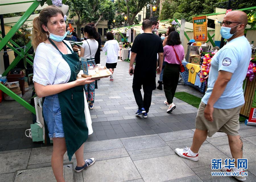 5月24日,游客在上海思南公館光顧露天夜市美食街。新華社記者陳飛攝