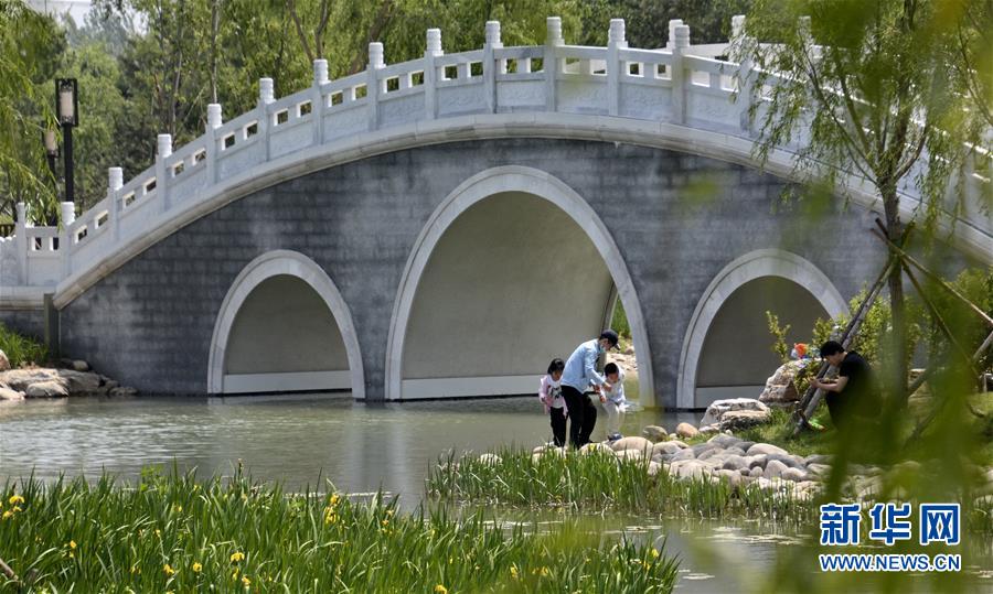 5月24日,北京大興區(qū)舊宮鎮(zhèn)居民在剛剛建成開放的森林公園內(nèi)游玩。這個公園占地面積500多畝,種植了70多種喬木和灌木,并設(shè)置濕地景觀區(qū)、田園風光區(qū)、林間徒步區(qū)等景觀區(qū)域。近年來,北京市大興區(qū)舊宮鎮(zhèn)大力發(fā)展城市森林和綠地建設(shè),先后建設(shè)了十余個大小不同的公園和綠地林地區(qū)域,總面積近4000畝,讓城市居民“聽得到河畔蛙聲、聞得見草味花香、看得到綠地森林”,居住環(huán)境大為改善。新華社記者李欣攝