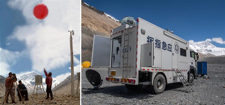 拼版照片:左圖為1975年6月9日,我國(guó)氣象工作者在珠穆朗瑪峰腳下的高山氣象站收集氣象資料。新華社記者程至善攝右圖為2020年5月25日拍攝的珠峰大本營(yíng)氣象應(yīng)急保障車(chē),西藏自治區(qū)氣象局氣象專(zhuān)家在這里與后方氣象專(zhuān)家進(jìn)行天氣會(huì)商。新華社記者普布扎西攝