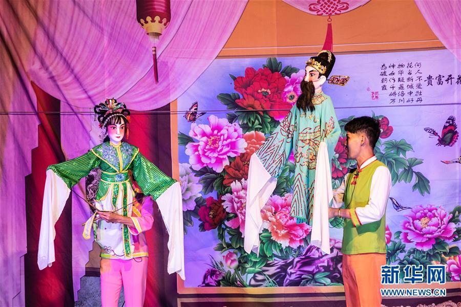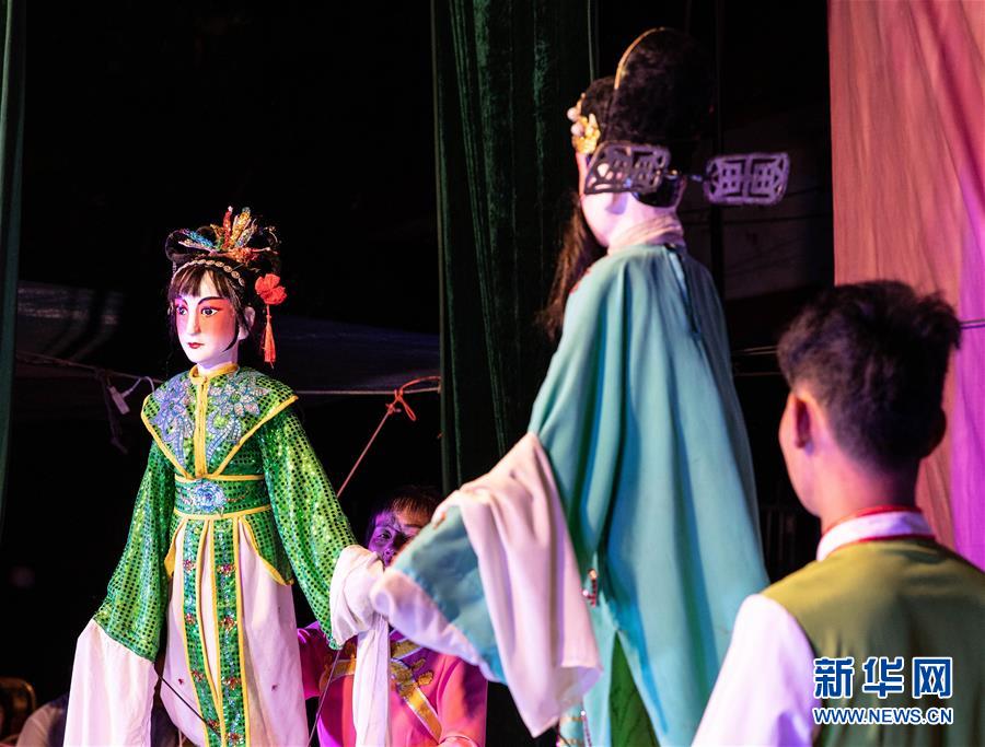 5月24日,海南臨高新風(fēng)人偶戲團(tuán)的人偶在舞臺(tái)亮相。新華社記者張麗蕓攝