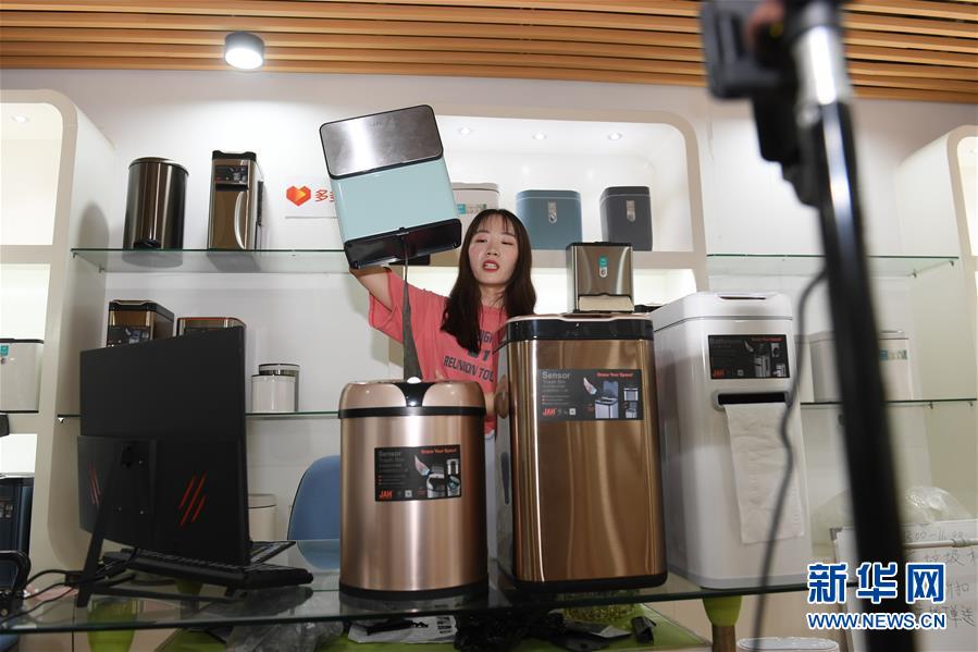 5月25日,在浙江省臺(tái)州市黃巖區(qū),一家塑料制品生產(chǎn)企業(yè)的工作人員在直播銷售智能垃圾桶。近年來,浙江省臺(tái)州市黃巖區(qū)的家居塑料制品生產(chǎn)企業(yè)加強(qiáng)與國(guó)內(nèi)電商平臺(tái)的對(duì)接,大力開拓線上市場(chǎng),根據(jù)線上市場(chǎng)反饋,提升產(chǎn)品研發(fā)針對(duì)性,創(chuàng)新產(chǎn)品類型,為企業(yè)轉(zhuǎn)型升級(jí)注入活力。新華社記者翁忻旸攝