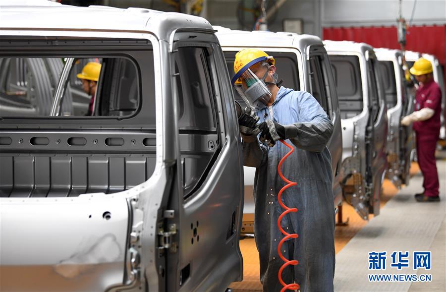5月26日,工人在江淮汽車(chē)新港基地輕卡生產(chǎn)區(qū)內(nèi)忙碌。新華社記者劉軍喜攝