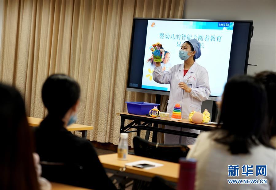 5月26日,中國福利會國際和平婦幼保健院健康教育科孕婦學校的醫(yī)生在上課。新華社記者 劉穎 攝