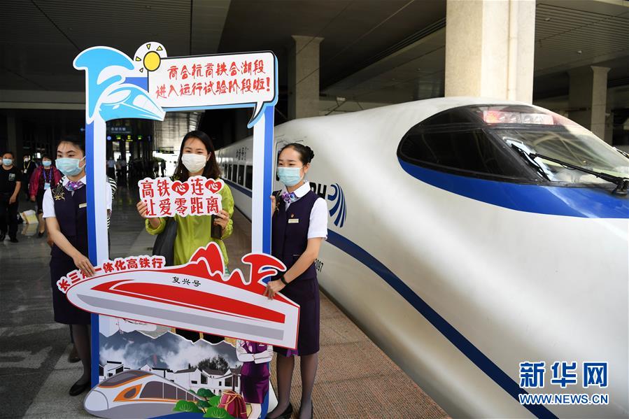 當日,商合杭高鐵合肥至湖州段正式從聯調聯試轉入運行試驗階段,鐵路部門將進行列車運行圖參數測試、故障模擬、應急救援演練、按圖行車試驗等項目,以確保6月底具備開通運營條件。