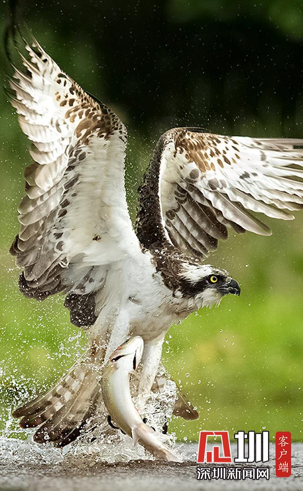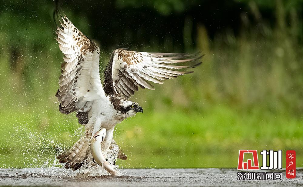2020年5月28日報道(具體拍攝時間不詳),54歲的Gladys Klip來自荷蘭,是一名銀行助理,他在蘇格蘭高地拍攝到魚鷹捕魚的精彩照片。畫面中,魚鷹快速俯沖而下,掠過水面,鷹爪隨即從水中成功抓起一條魚兒,濺起水花,整個過程精彩詮釋快準狠。Gladys Klip稱他在早晨5點的時候已經(jīng)在等候拍攝。