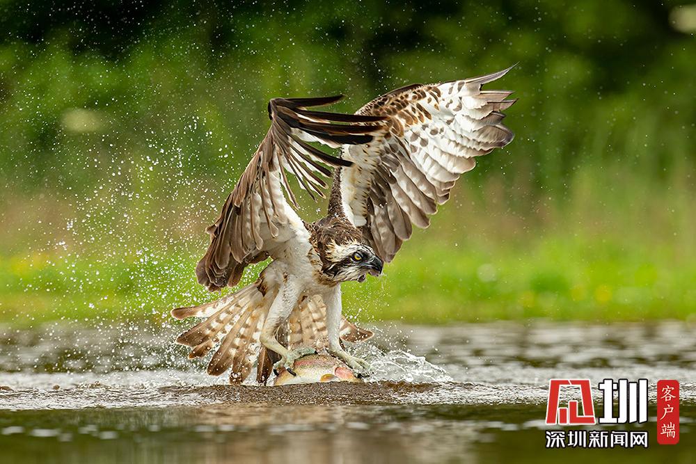 魚鷹俯沖入水捕魚 伺機而動“快準狠”