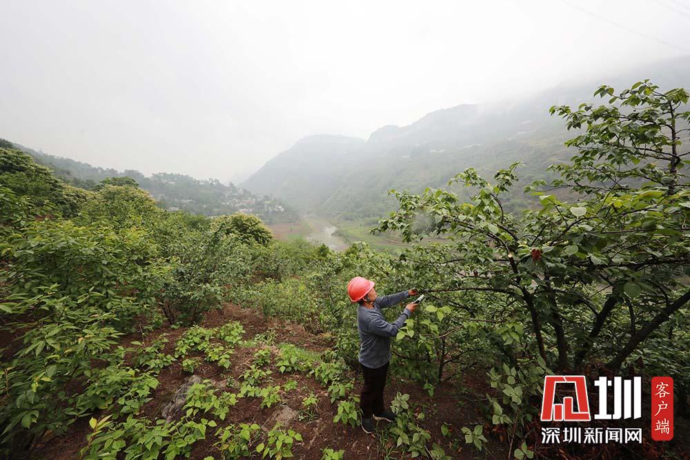 2020年5月27日,在貴州省畢節(jié)市納雍縣化作鄉(xiāng)雙巖頭村,村民對櫻桃進(jìn)行田間管理。