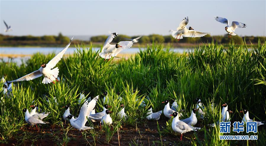 5月28日在陜西省神木市紅堿淖拍攝的遺鷗。陜西省神木市紅堿淖是中國最大的沙漠淡水湖,近年來隨著周邊生態(tài)環(huán)境改善,紅堿淖水位逐年提升,水域面積不斷擴(kuò)大,每年四至八月,都會吸引大批遺鷗來此繁衍棲息,已成為遺鷗繁殖的重要基地。新華社記者劉瀟攝