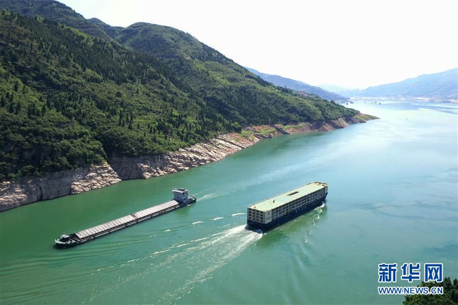 5月29日,船只在長江瞿塘峽段江面上航行(無人機照片)。新華社記者王全超攝