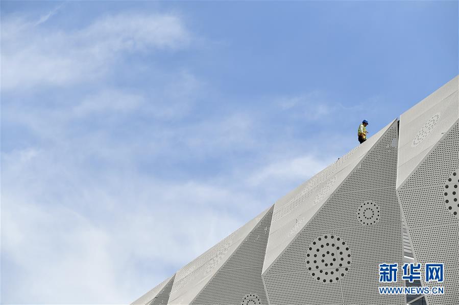 5月29日,工人在西安奧體中心游泳館施工。新華社記者張博文攝