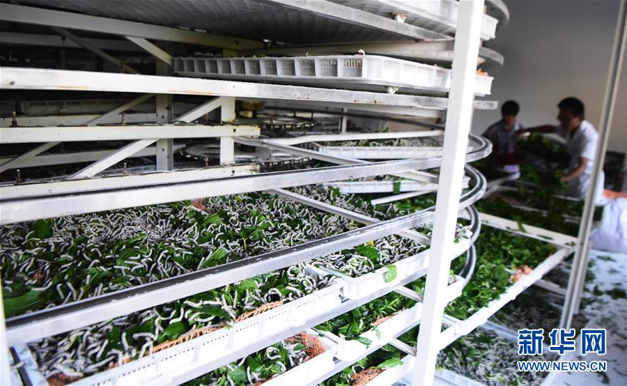 5月29日,奉節(jié)縣新民鎮(zhèn)中嶺村蠶桑產(chǎn)業(yè)扶貧基地工作人員在智慧蠶房?jī)?nèi)作業(yè)。新華社記者 王全超 攝