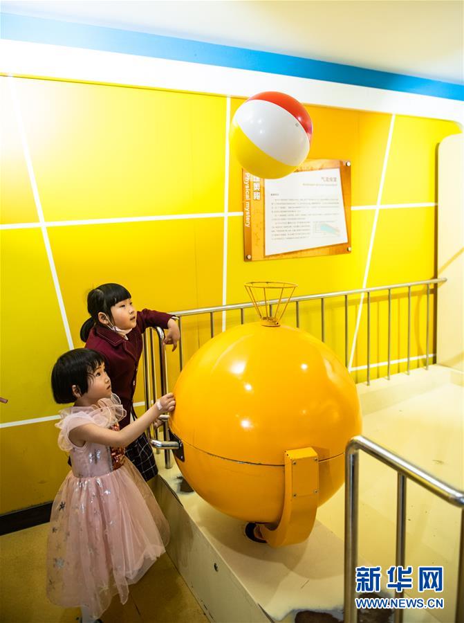 6月1日,小朋友在貴州科技館內體驗氣流投籃。新華社記者陶亮攝。