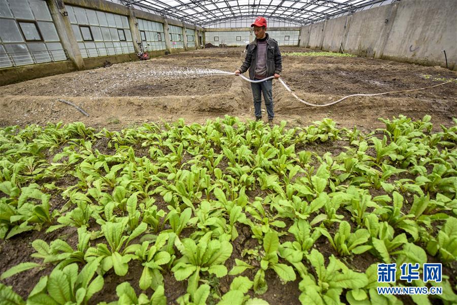 在西藏山南市隆子縣玉麥鄉(xiāng),一名村民在溫室大棚內(nèi)給蔬菜澆水(5月27日攝)。新華社記者王炳坤攝。