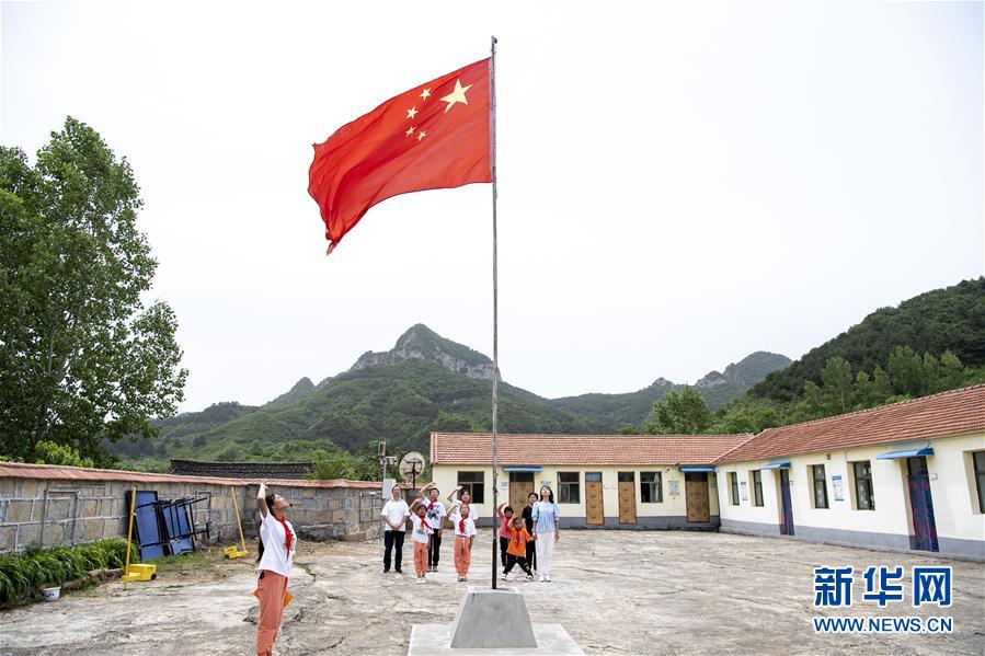 6月2日,開學第一天,馬武寨寄宿制小學舉行了升旗儀式。新華社記者楊晨光攝。