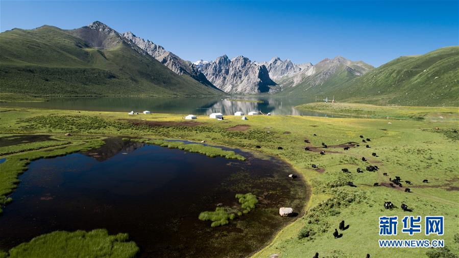 2019年7月9日拍攝的位于三江源地區(qū)的青海省果洛藏族自治州久治縣境內(nèi)的年保玉則風(fēng)光(無(wú)人機(jī)照片)。6月2日,青海省生態(tài)環(huán)境廳發(fā)布《2019年青海省生態(tài)環(huán)境狀況公報(bào)》稱,青海省三江源地區(qū)境內(nèi)的長(zhǎng)江、黃河、瀾滄江干流流域水質(zhì)優(yōu)良,植被覆蓋度呈增長(zhǎng)趨勢(shì),全省生態(tài)環(huán)境狀況總體保持穩(wěn)定。新華社記者吳剛攝。