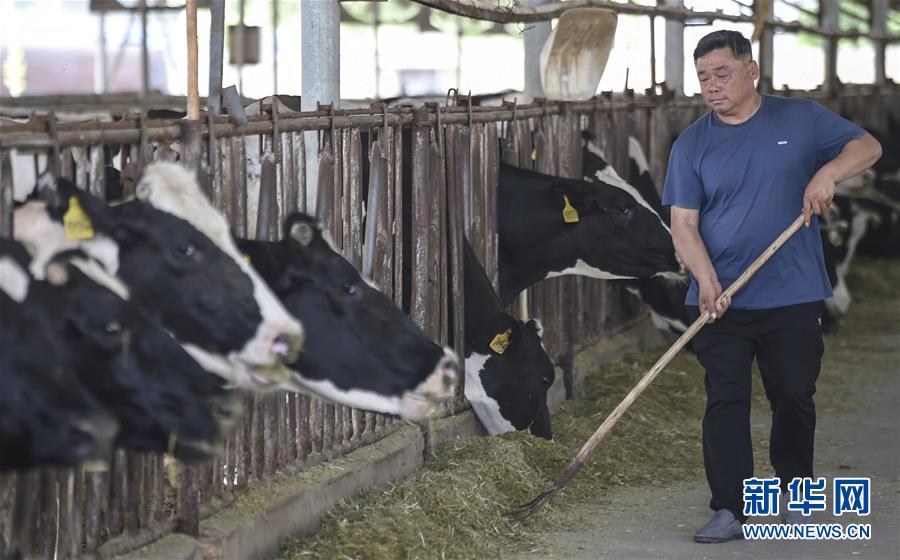 6月3日,村民在深州市榆科鎮(zhèn)郝家莊村奶牛養(yǎng)殖扶貧基地飼喂奶牛。今年以來,河北省深州市圍繞決勝全面小康、決戰(zhàn)脫貧攻堅(jiān)任務(wù)目標(biāo),在推進(jìn)產(chǎn)業(yè)扶貧的過程中注重激發(fā)內(nèi)生動(dòng)力,通過電商扶貧、扶貧車間、特色種植養(yǎng)殖等多種形式,提升自我“造血”功能,提高貧困群眾受益度。新華社記者李曉果攝。