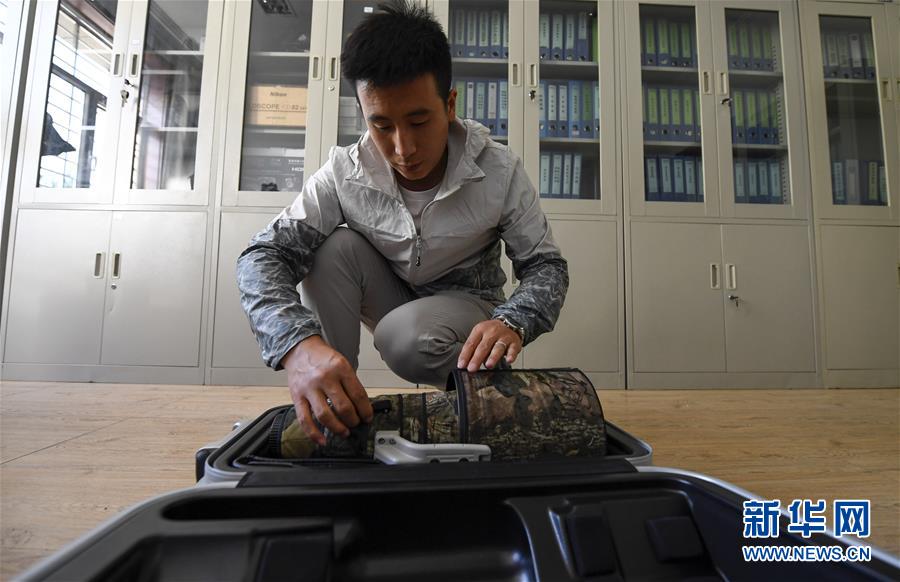 6月3日,李學明在整理設備,準備開始當天的巡護監(jiān)測工作。新華社記者馮開華攝。