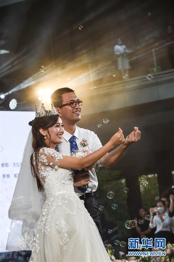 6月6日,新人在海南博鰲樂(lè)城國(guó)際醫(yī)療旅游先行區(qū)參加集體婚禮。 新華社記者 張麗蕓 攝
