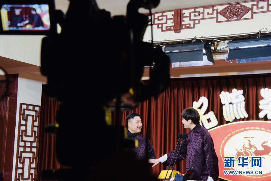 6月6日晚,天津名流茶館的相聲演員在付費直播《名流名家“逗你玩”》演出中說相聲。隨著疫情防控形勢逐漸向好,天津的一些茶館紛紛轉(zhuǎn)戰(zhàn)“云端”說相聲,推出付費直播演出,并邀請一些幸運觀眾到現(xiàn)場觀看,在傳播津味相聲、培養(yǎng)年輕觀眾的同時,也為即將到來的線下演出“預熱”。新華社記者周潤健攝
