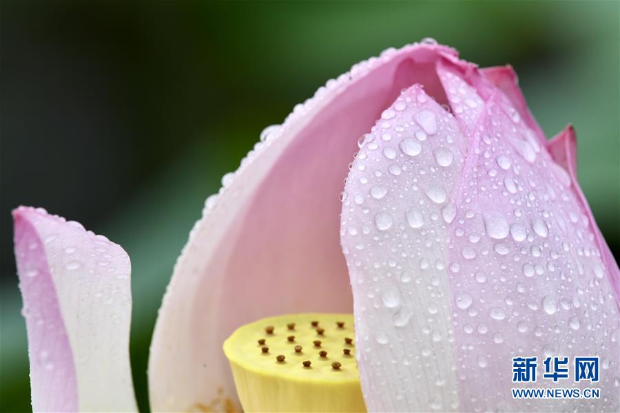 6月7日,一陣小雨過(guò)后,福州金山公園內(nèi)盛開的荷花愈加?jì)善G欲滴。新華社記者姜克紅攝