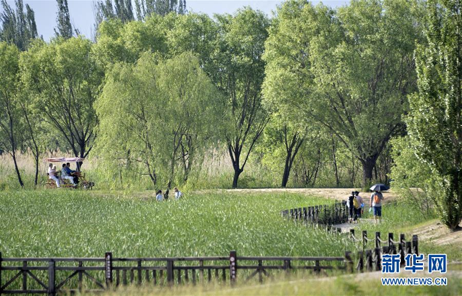 6月7日,市民在位于北京市延慶區(qū)的野鴨湖國家濕地公園游玩。隨著北京消費季的啟動,不少市民利用周末時間來到北京遠(yuǎn)郊的風(fēng)景區(qū)游玩,參加當(dāng)?shù)嘏e辦的各類消費季和休閑旅游活動。新華社記者李欣攝