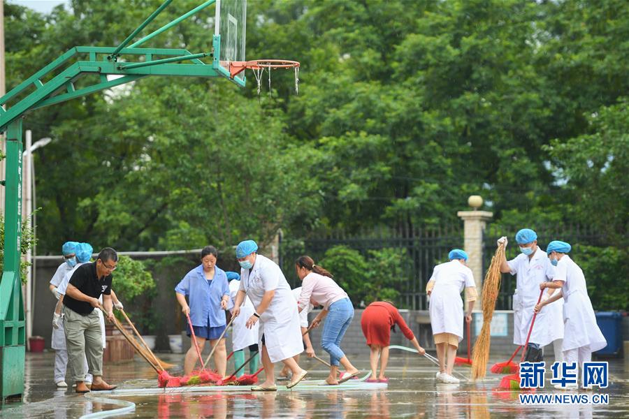6月8日,在永州市江華瑤族自治縣白芒營鎮(zhèn)車下完全小學(xué),工作人員在校園里清淤、沖洗地面。受近日持續(xù)強降雨影響,湖南省永州市江華瑤族自治縣發(fā)生洪澇災(zāi)害。6月8日,永州市江華瑤族自治縣白芒營鎮(zhèn)車下完全小學(xué)開展清淤、消毒工作,為6月9日恢復(fù)上課做準(zhǔn)備。新華社記者陳澤國攝