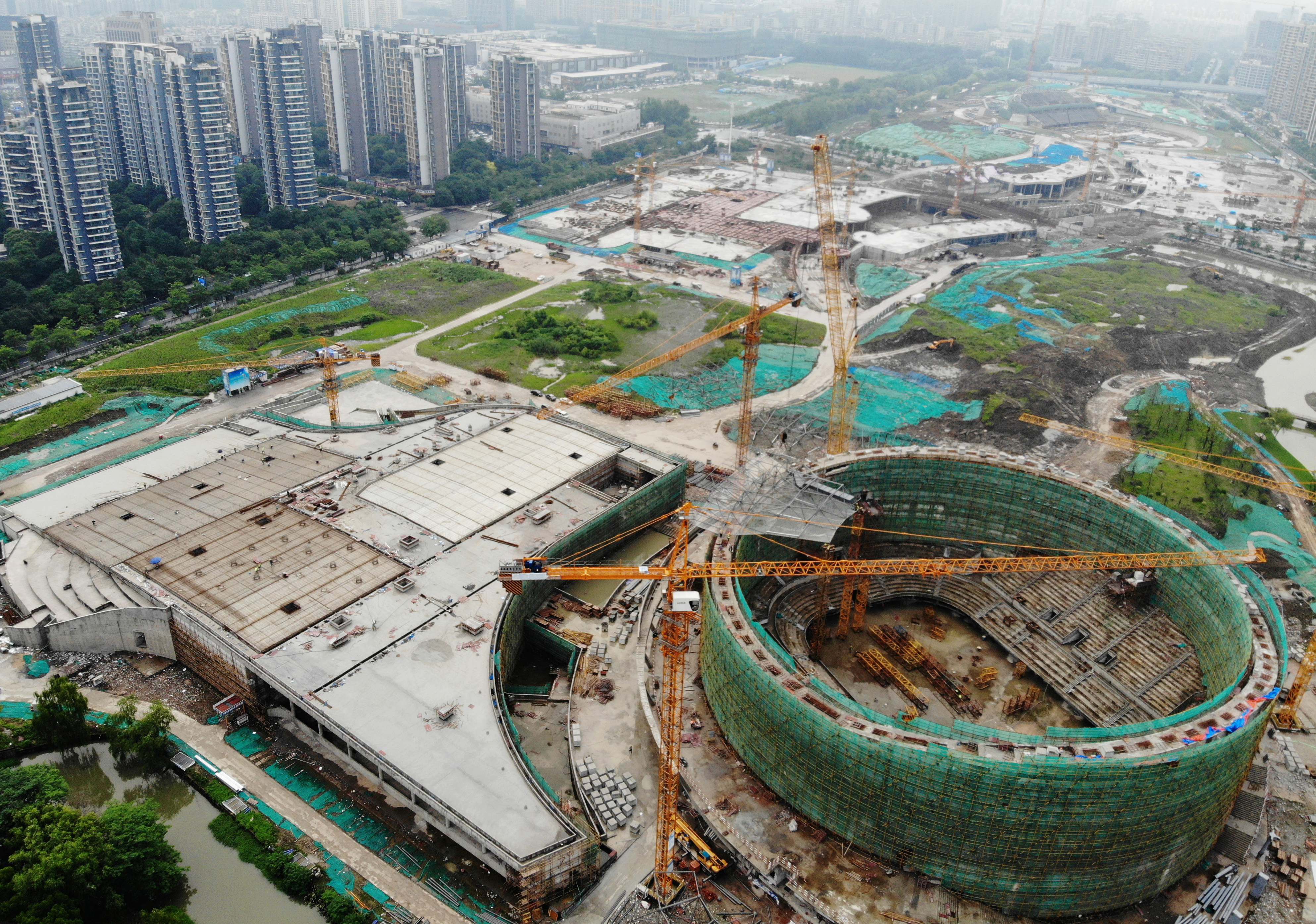 2020年6月9日,從空中俯瞰正在建設(shè)中的杭州亞運(yùn)會(huì)乒乓球館。